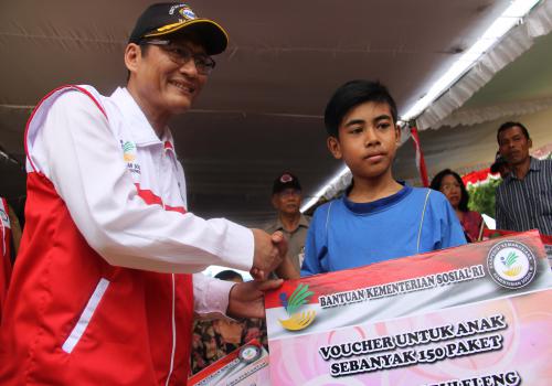 Penyerahan secara simbolis diserahkan langsung oleh Inspektur Jenderal Kementerian Republik Indonesia untuk Kabupaten Buleleng diserahkan berupa voucheruntuk anak 150 Paket hari Sabtu, 22 Februari 2014 pukul 11.30 WITA di Lapangan Umum Desa Sudaji Kecamatan Sawan Kabupaten Buleleng disaksikan langsung oleh masyarakat dan tokoh – tokoh masyarakat.