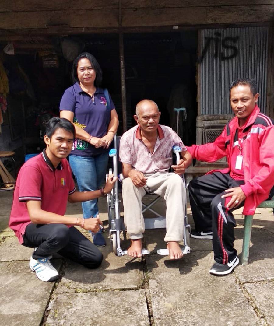 Kepala Bidang Pelayanan dan Rehabilitasi Sosial Luh Emi Suesti, SH mewakili Bapak Kepala Dinas Sosial Kabupaten Buleleng bersama Global Village menyerahkan bantuan berupa kursi roda untuk warga disabilitas Desa Pancasari, Kecamatan Sukasada, Kabupaten Buleleng.