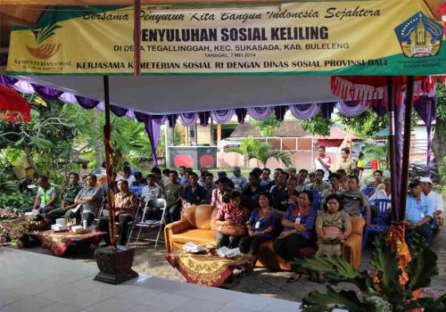 Penyuluhan Sosial Keliling di Desa Tegallinggah Kecamatan Sukasada Kabupaten Buleleng Kemensos RI dengan Dinas Sosial Provinsi pada hari Rabu, tanggal 07 Mei 2014 pukul 04.00 WITA. dihadiri langsung oleh Kepala Bidang Pemberdayaan Sosial beserta kasi dan staff bidang pemberdayaan sosial Dinas Sosial Kabupaten Buleleng, Camat Sukasada, Perbekel Desa Tegallinggah,Polres Sukasada, Satuan Kodim, warga Desa Tegallinggah dan Dinas Sosial Provinsi. dalam kegiatan ini diadakan Acara Bondres dalam rangka acara penyuluhan sosial. Kegiatan ini merupakan wujud kerjasama Kemensos RI dengan Dinas Sosial Provinsi dan Kabupaten Buleleng.