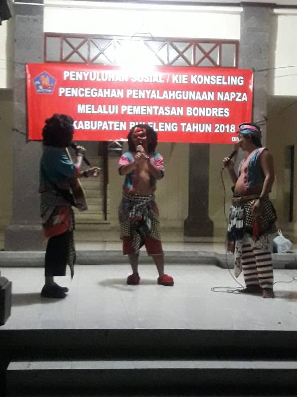 Selasa (21/08) Pemerintah Kabupaten Buleleng melalui program Penyuluhan Sosial / KIE Konseling untuk mencegah penyalahgunaan napza melalui pementasan Bondres Rare Kual.