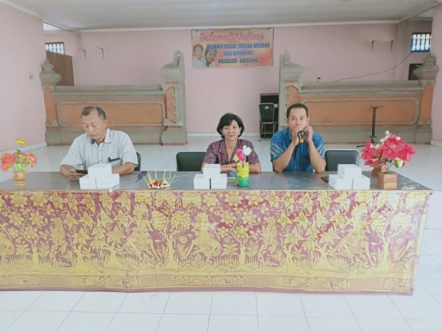 Sosialisasi ini dihadiri langsung oleh Kasi Penanganan Fakir Miskin mewakili Kepala Dinas Sosial kabupaten Buleleng dengan didampingi TKSK kecamatan Banjar, aparat desa Kaliasem. Sosialisasi ini berlangsung di Panti Jompo Tresna Werdha “jara Mara pati” Desa kaliasem, kecamatan Banjar, Kabupaten Buleleng.